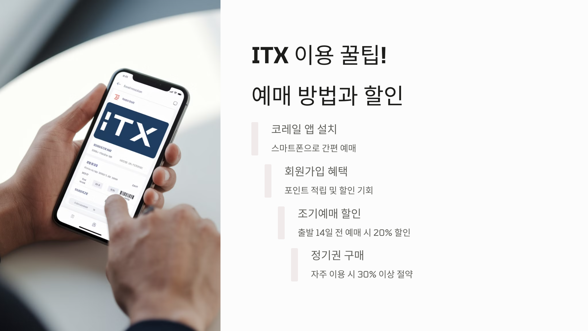 ITX를 더욱 저렴하고 편리하게 이용하려면 예매 방법과 할인 혜택을 잘 활용하는 것이 중요해요. 🚆💡