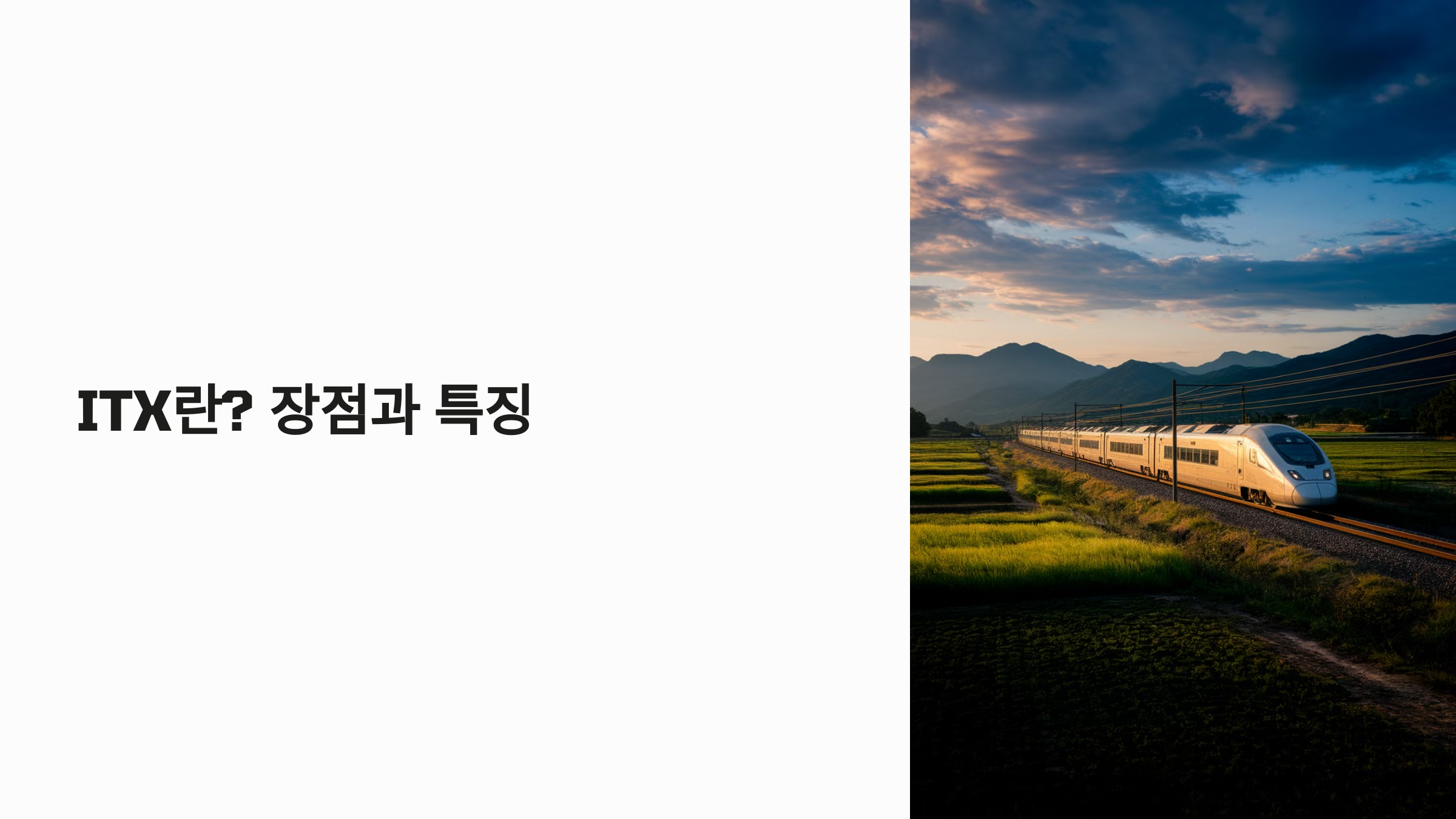 ITX는 'Intercity Train eXpress'의 약자로, 기존 새마을호보다 빠르고 편리한 고속 열차예요. 🚆