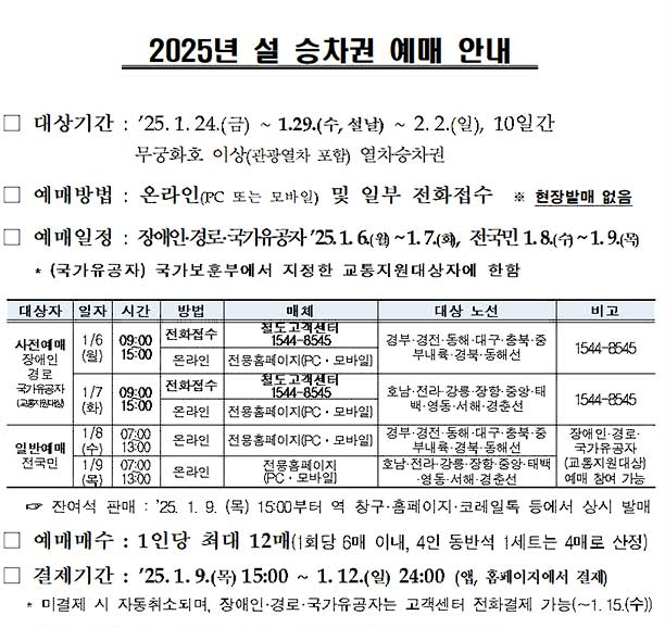 원활한 예매를 통해 즐거운 설 명절 보내시기 바랍니다.