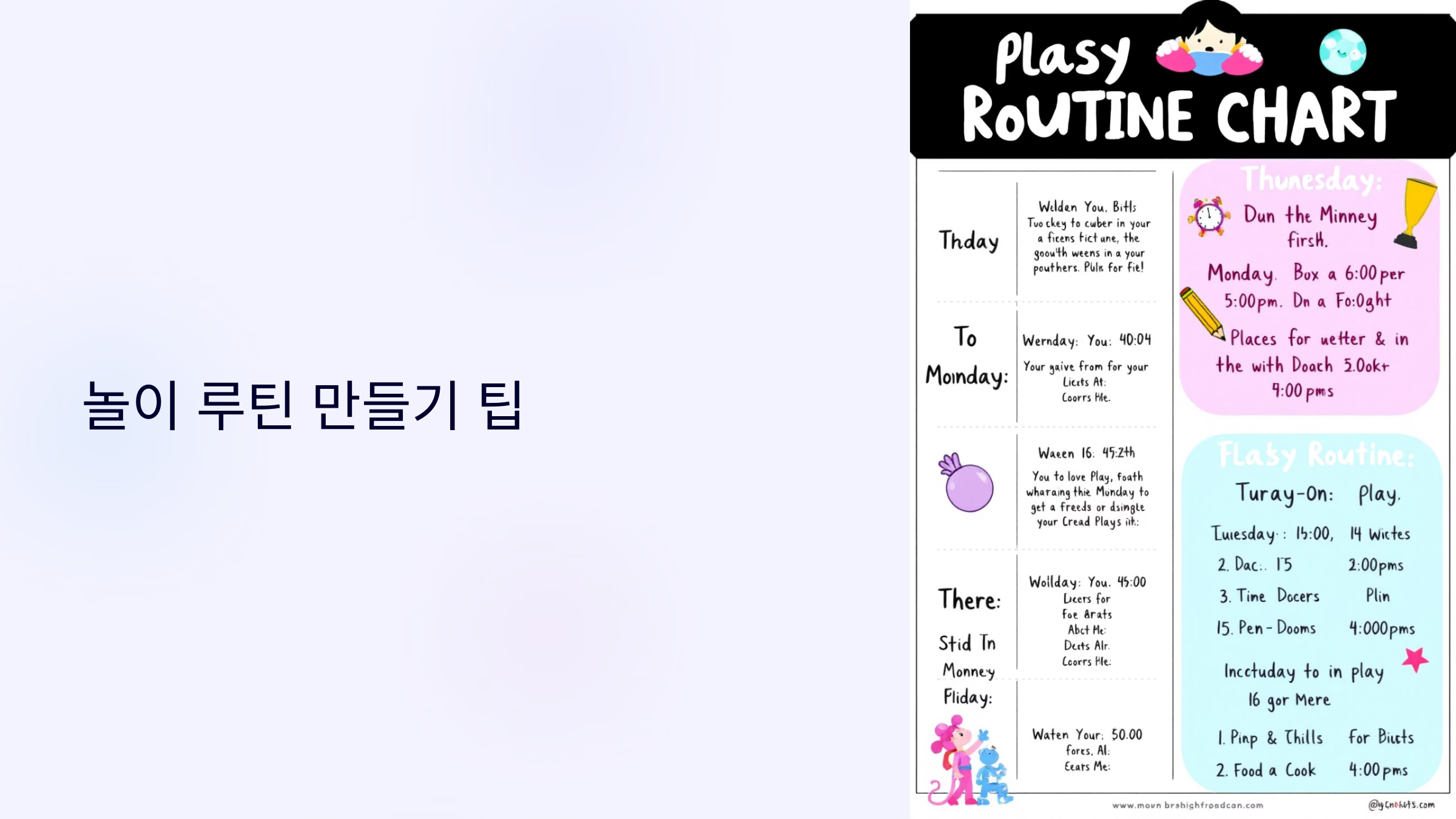 이제 다음 섹션은 [놀이 루틴 만들기 팁]이에요! 지속적으로 놀이를 습관화하는 방법을 알려드릴게요! ⏳
