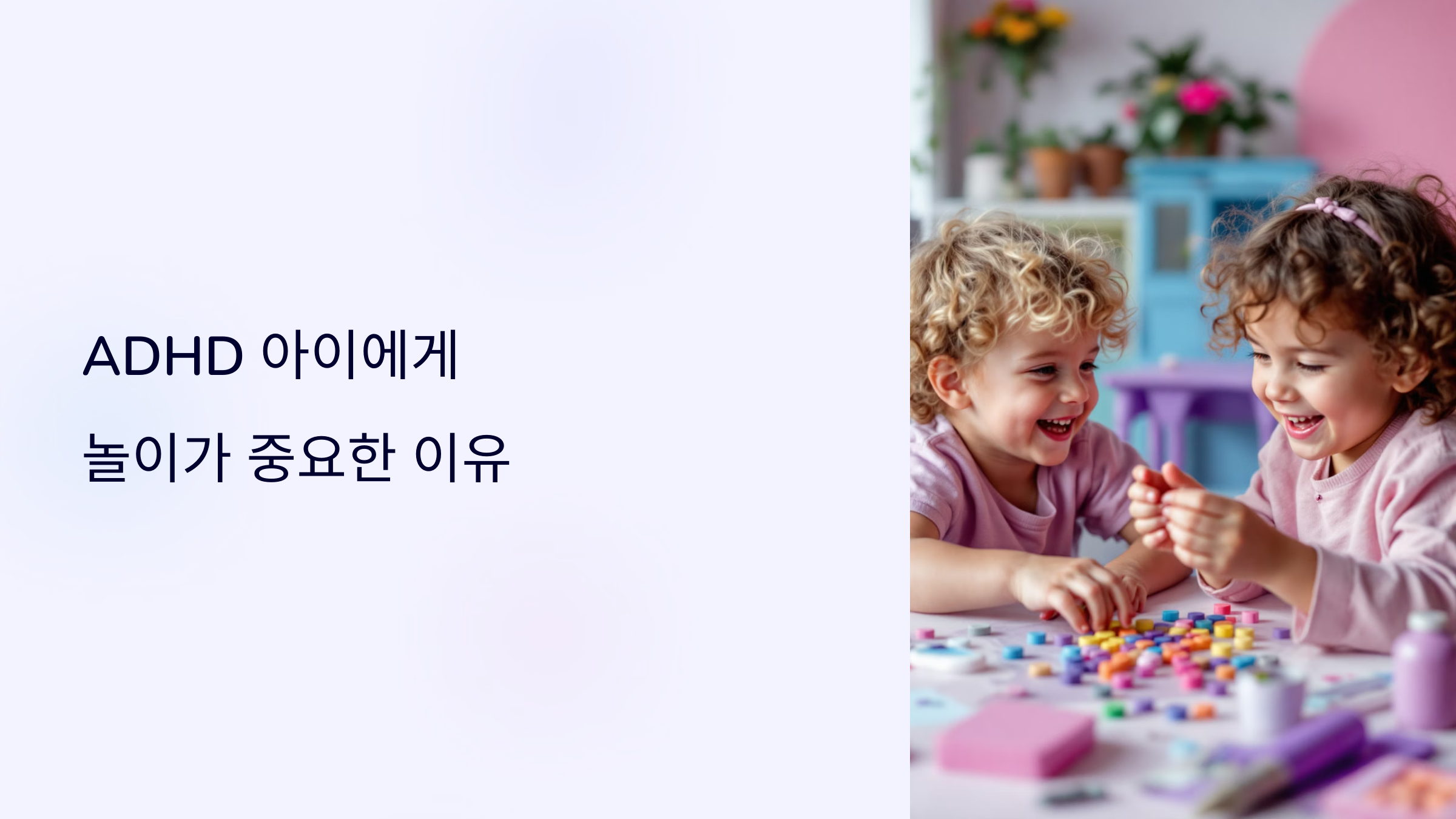 ADHD 아동은 일반 아이들보다 충동적이고 산만한 행동이 많아 보여요. 하지만 그 안에는 집중하고 싶지만 방법을 모르는 아이의 뇌가 숨어 있어요. 이럴 때 ‘놀이’는 최고의 해결책이 될 수 있어요. 🎈