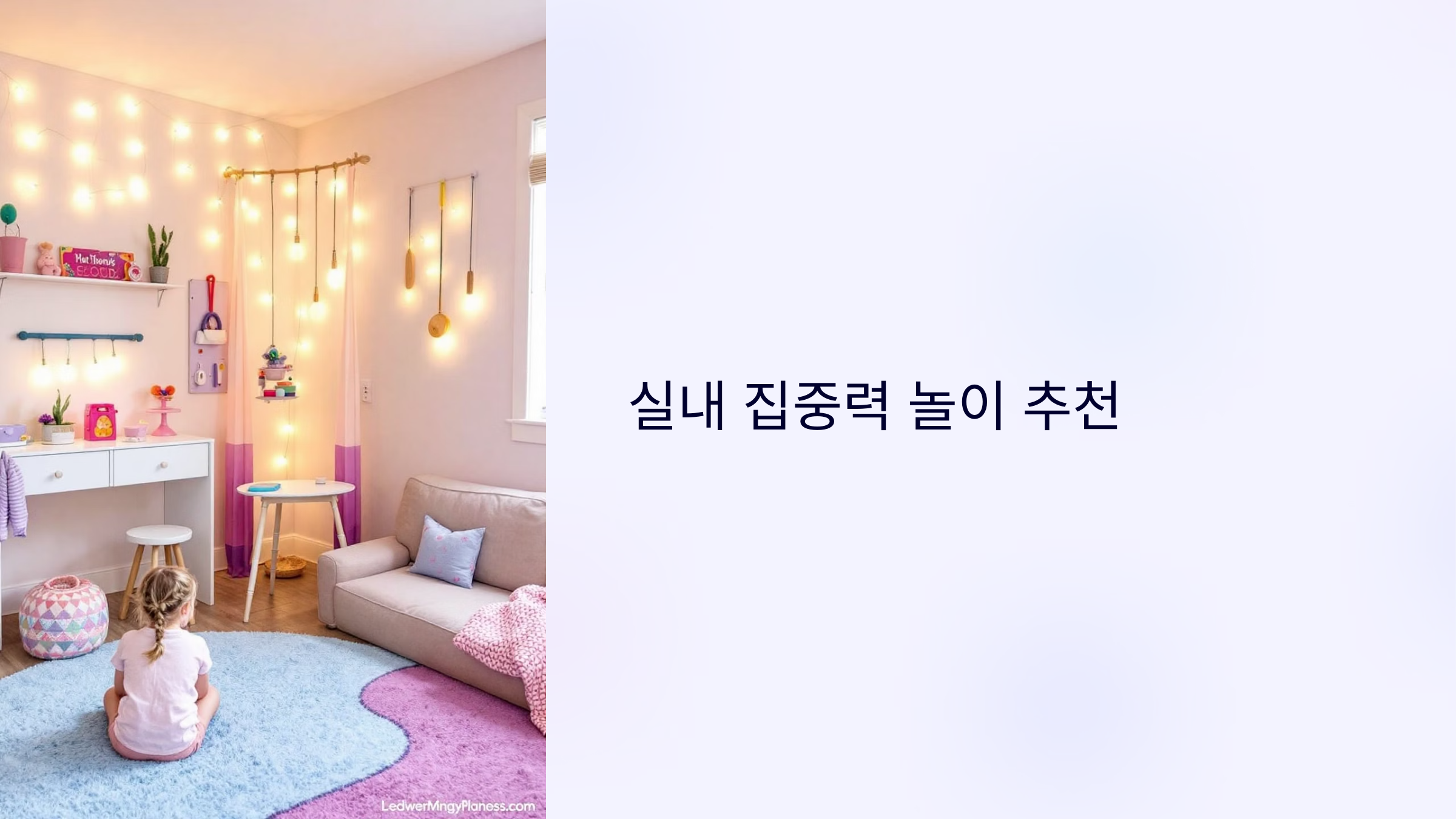 이제 다음은 실내에서 쉽게 할 수 있는 [실내 집중력 놀이 추천]으로 이어져요! 집에서도 할 수 있는 활동들 소개할게요 🏠