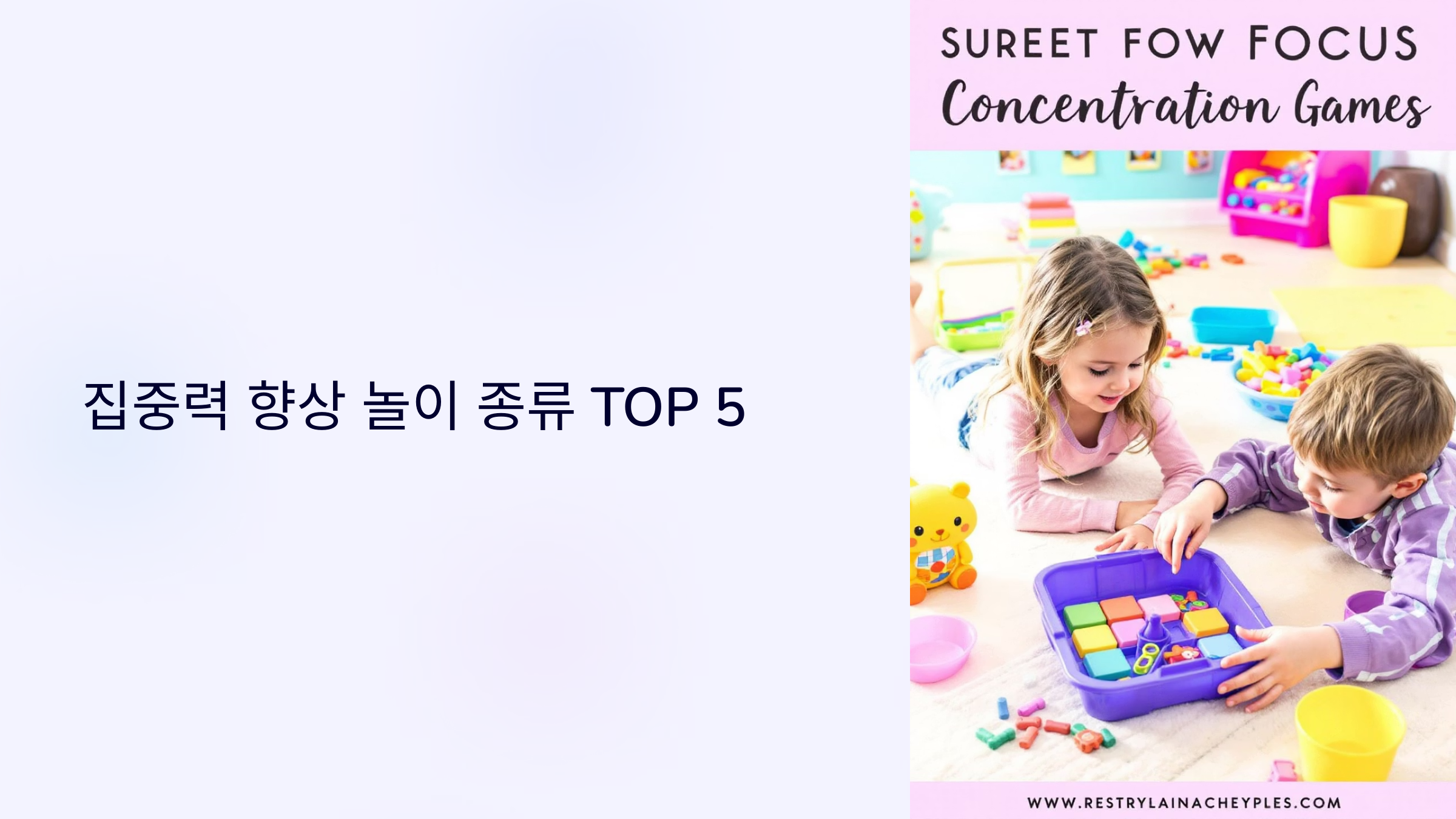 다음 섹션에서는 [집중력 향상 놀이 종류 TOP 5]를 본격 소개해요! 어떤 놀이가 아이에게 잘 맞을까요? 🎲